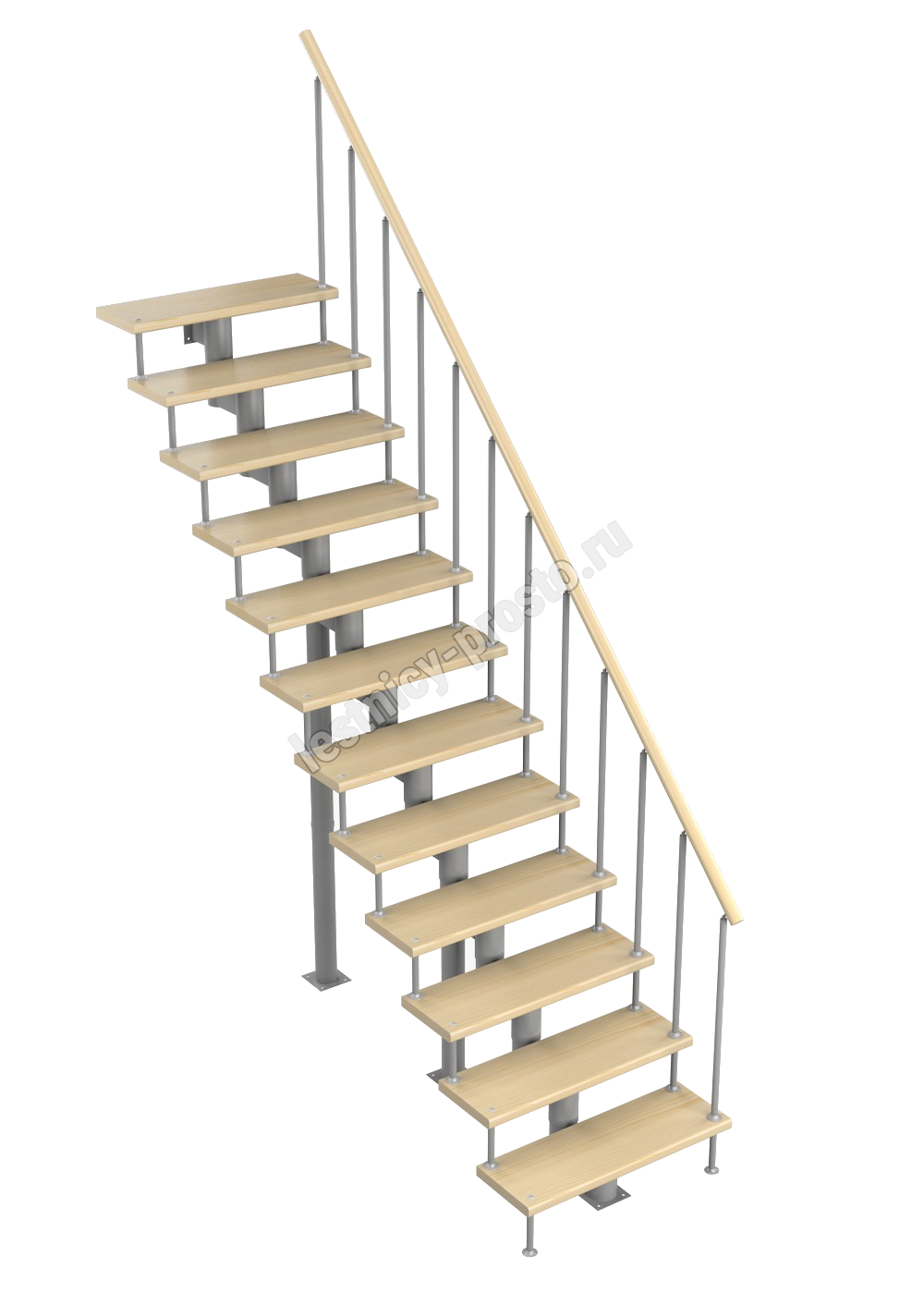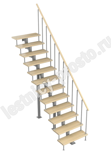 Модульная лестница Стандарт 2700-2820, Серый, Лиственница, Нержавеющая сталь