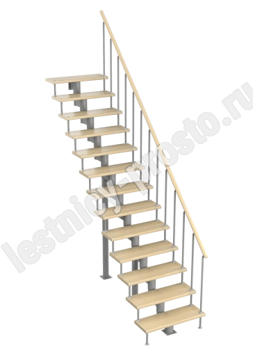 Модульная лестница Стандарт 2925-3055, Серый, Лиственница, Нержавеющая сталь