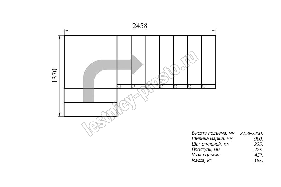 Модульная лестница Статус 225 2250-2350, Серый, Лиственница, Нержавеющая сталь