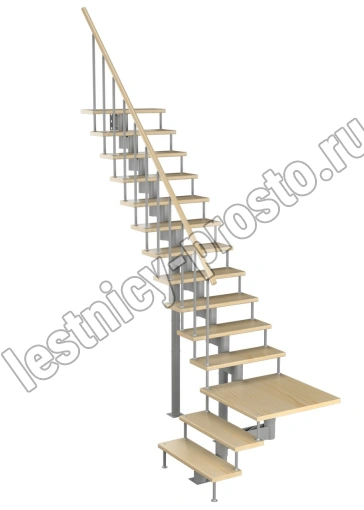 Модульная лестница Статус 225 3150-3290, Серый, Сосна, Крашеная
