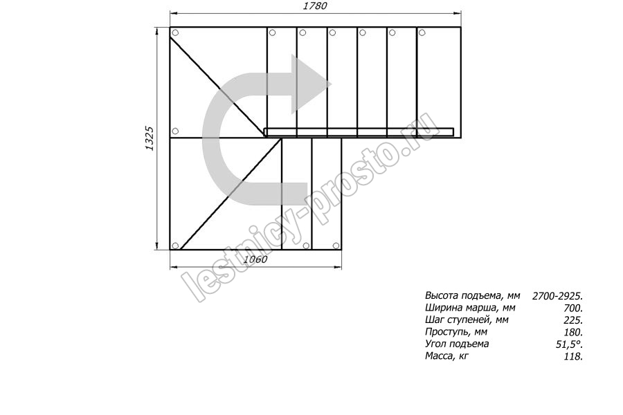 Модульная малогабаритная лестница Эксклюзив 2700-2925, Серый, Сосна, Крашеная, Без Ступений