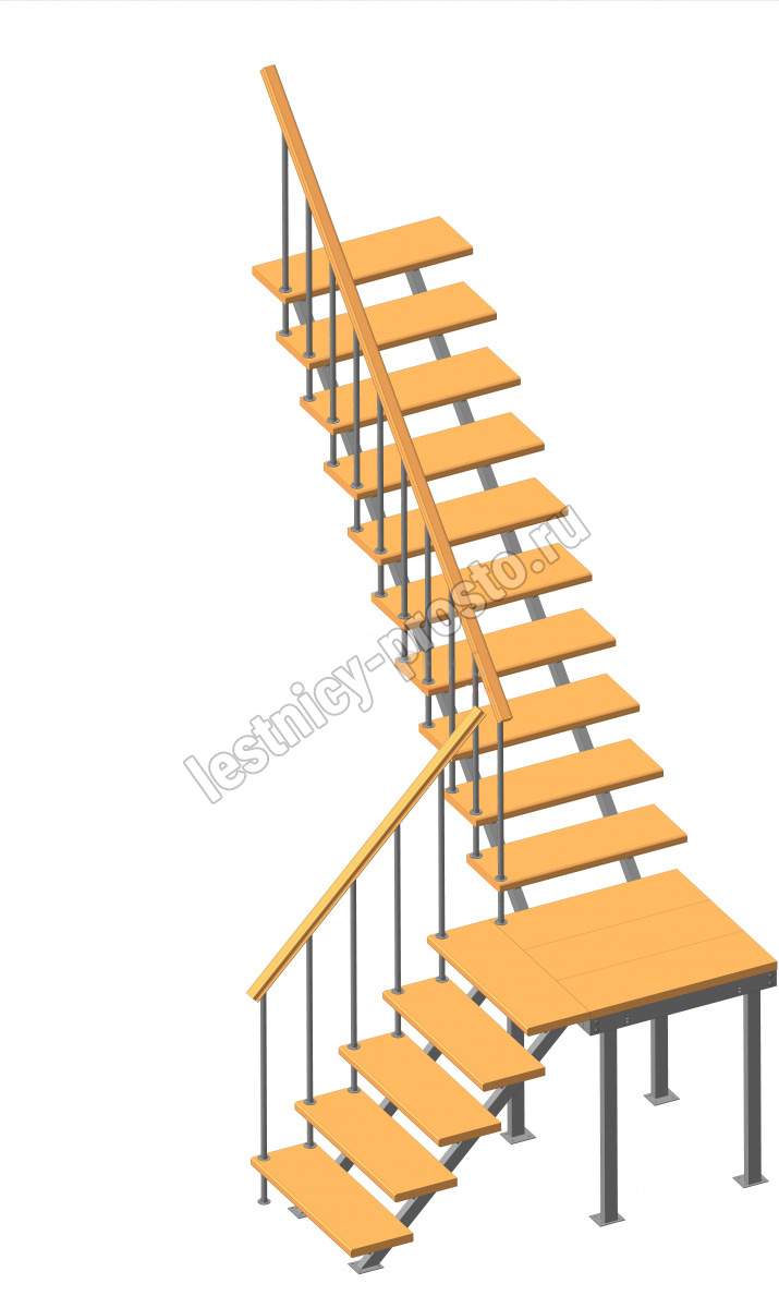 Металлокаркас покрыт порошковой краской. В зависимости от дизайна лестницы, металлокаркас может оставаться видимым или полностью обшиваться. Лестница на базе каркаса может собираться как в левозаходном, так и в правозаходном вариантах. Монтаж рекомендуется осуществлять силами двух человек на объекте, по указаниям, приведенным в паспорте.