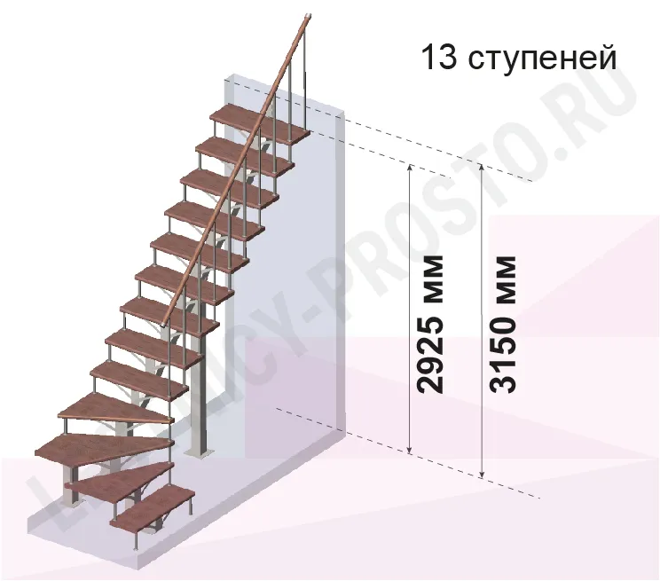 | Лестница PROSTO MONO Г-образная h270 см, ступени хвоя |