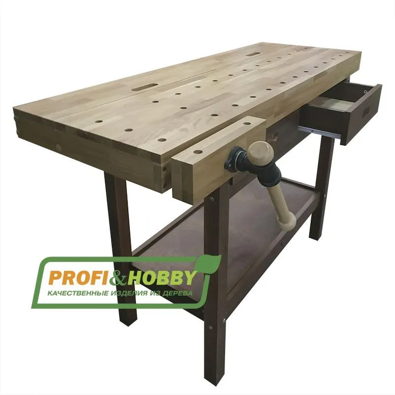 Комплектация: 1 тиски, 2 пенала в столешнице, 2 выдвижных ящика, полка для инструментов.