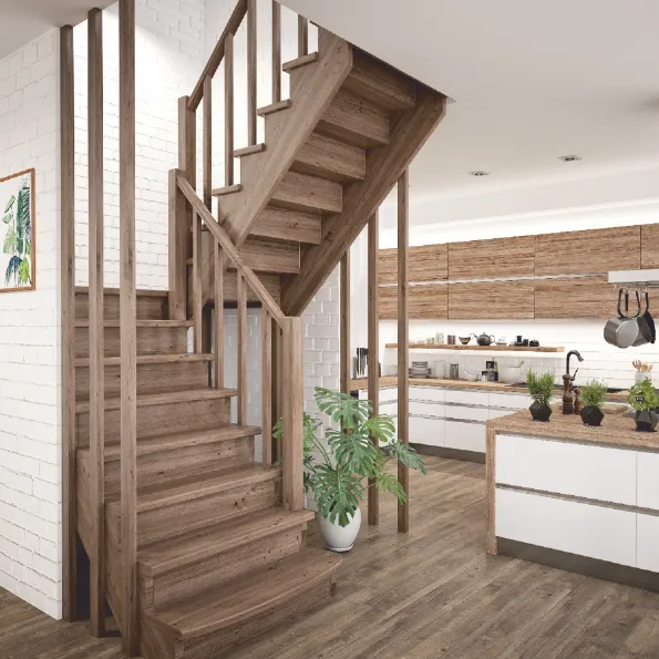 Поручни из ПВХ с эффектом дерева с алюминиевым сердечником выпускаются в светлом или темном исполнении, чтобы соответствовать оттенку ступеней.