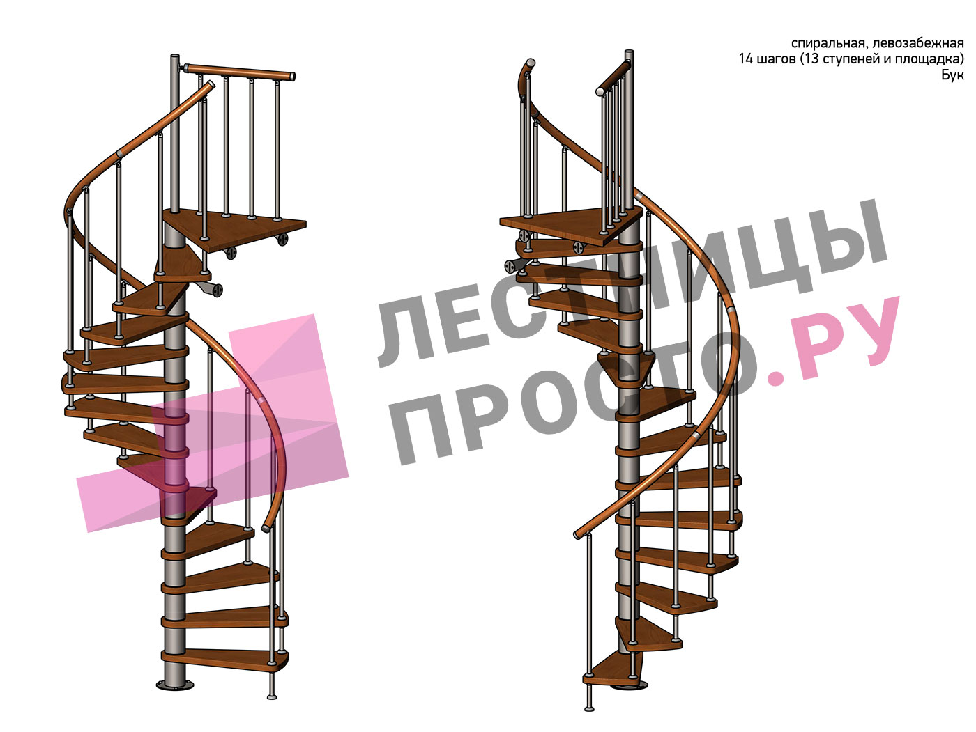Винтовая лестница Prosto Spiral Black D140см, h303.9-348,1 см, бук