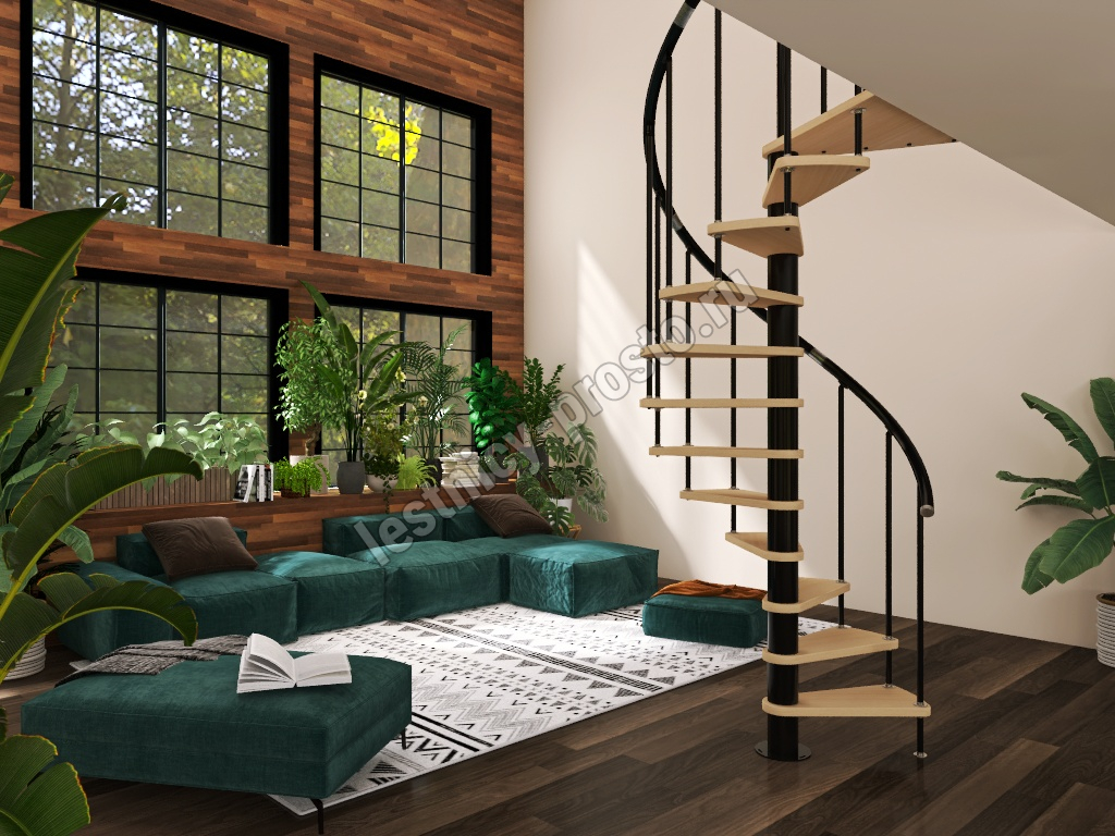 Винтовая лестница Prosto Spiral Black D140см, h325.7-369.8 см, бук