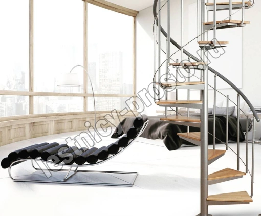 Винтовая лестница Solo vertical серебро, натуральный бук