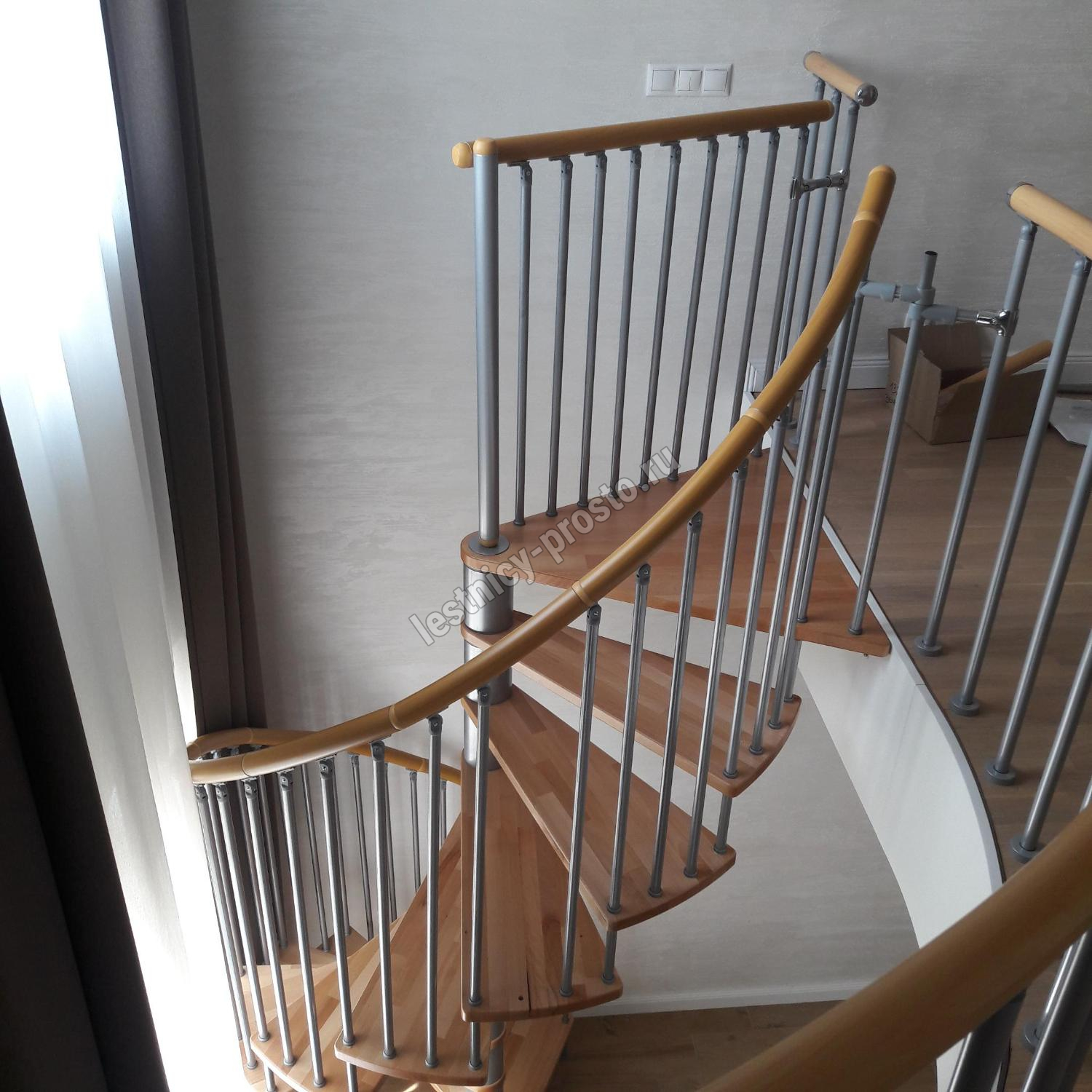 Поручень лестницы изготовлен из массива бука в тон ступеням. Ступени и поручень покрыты износостойким защитным лаком.