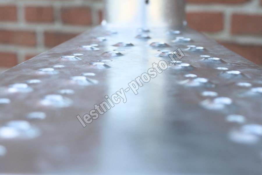 Металлическая винтовая лестница с металлическим поручнем и площадкой. Лестница монтируется как по часовой стрелке, так и против нее. Предназначена для использования внутри помещения или снаружи. На ступенях противоскользящие насечки. Лестница изготовлена из оцинкованной стали.
