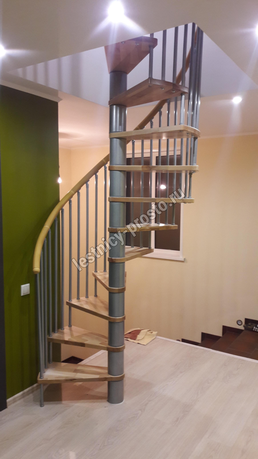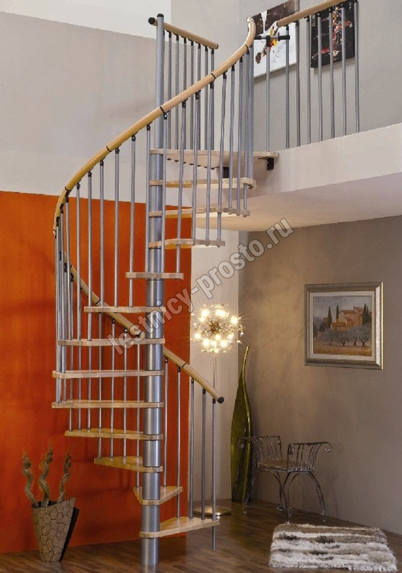 Винтовая лестница SPIRAL DECOR d140 см, серебро, бук лакированный