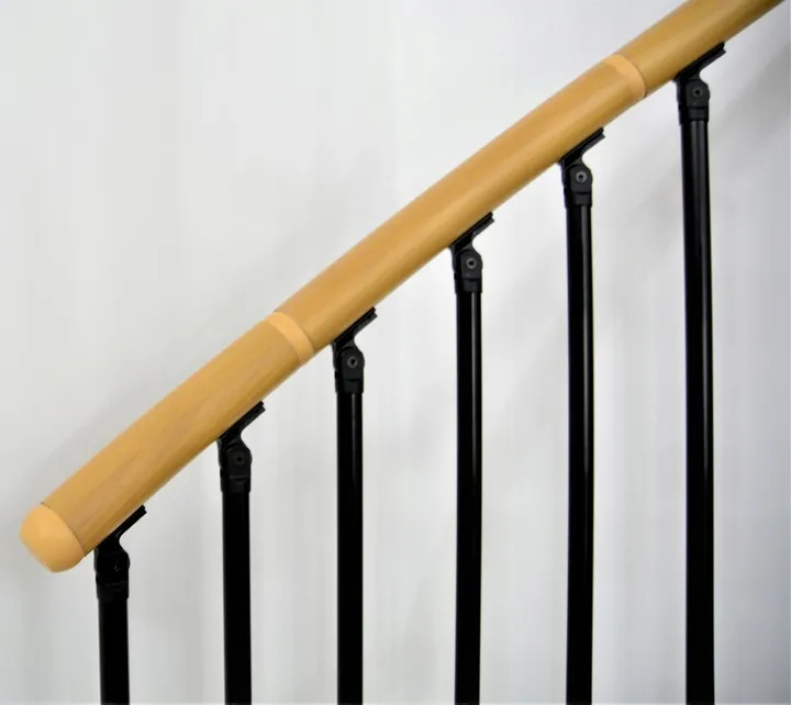 Лестница представлена в двух вариантах: с поворотом направо и с поворотом налево. Благодаря возможности регулировать высоту шага с помощью пластиковых вставок (входят в базовый комплект), высоту лестницы можно варьировать в пределах от 2860 до 3090 мм. Кроме того, купив дополнительную секцию для этой лестницы, можно поднять высоту до 3320 мм. Перила изготовлены из алюминия и окрашены "под дерево".