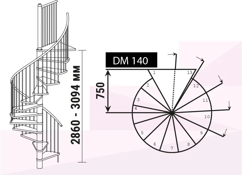 Высота лестницы 2860 - 3090 мм