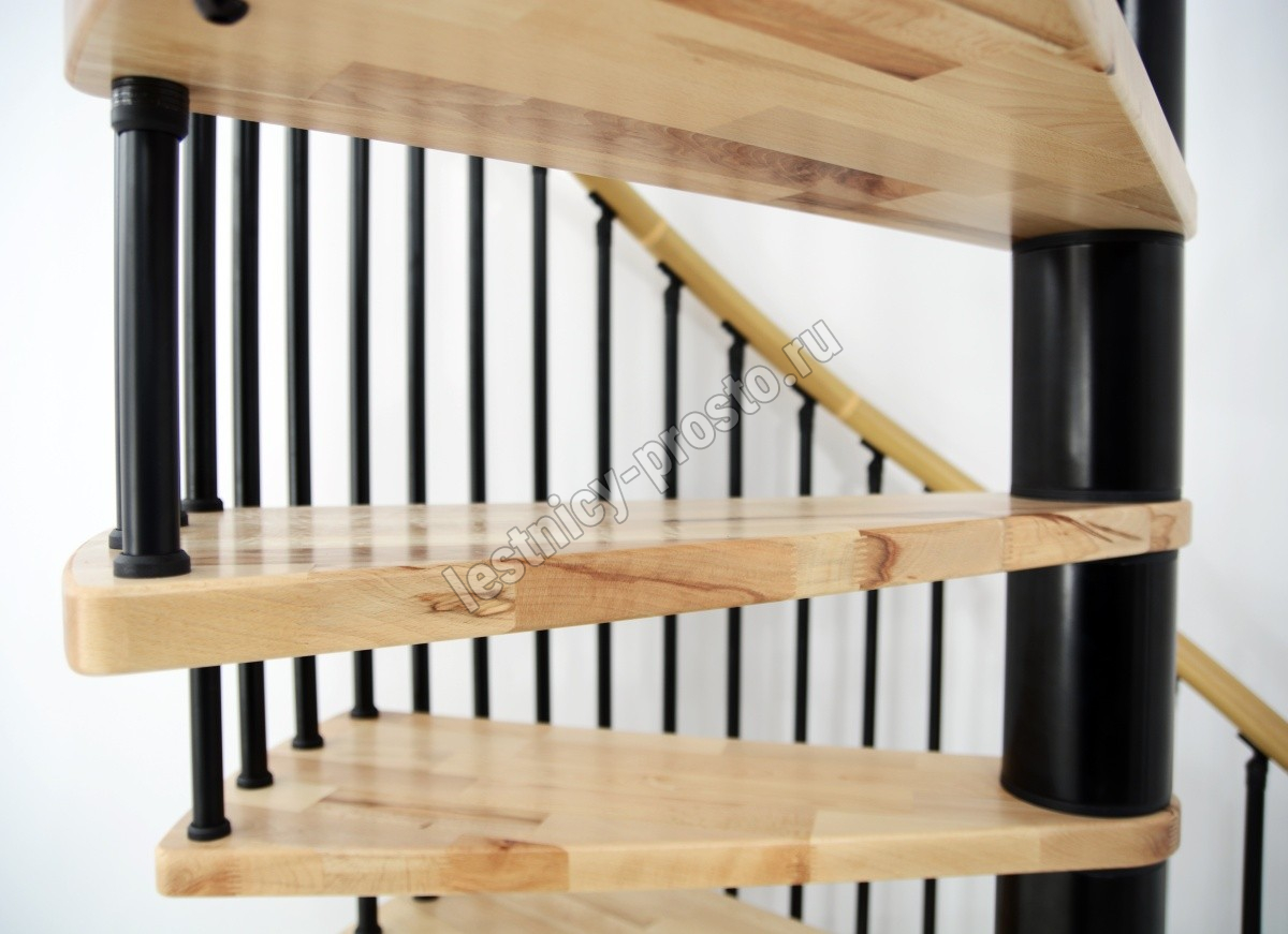 Перила изготовлены из массива бука и покрыты износостойким лаком.