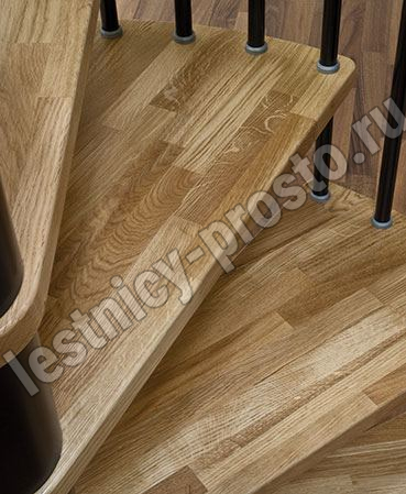 Лестница представлена в двух вариантах: с поворотом направо и с поворотом налево. Благодаря возможности регулировать высоту шага с помощью пластиковых вставок (входят в базовый комплект), высоту лестницы можно варьировать в пределах от 2860 до 3090 мм. Кроме того, купив дополнительную секцию для этой лестницы, можно поднять высоту до 3320 мм. Поручень изготовлен из массива бука в тон ступеням. Ступени и поручень покрыты износостойким защитным лаком.