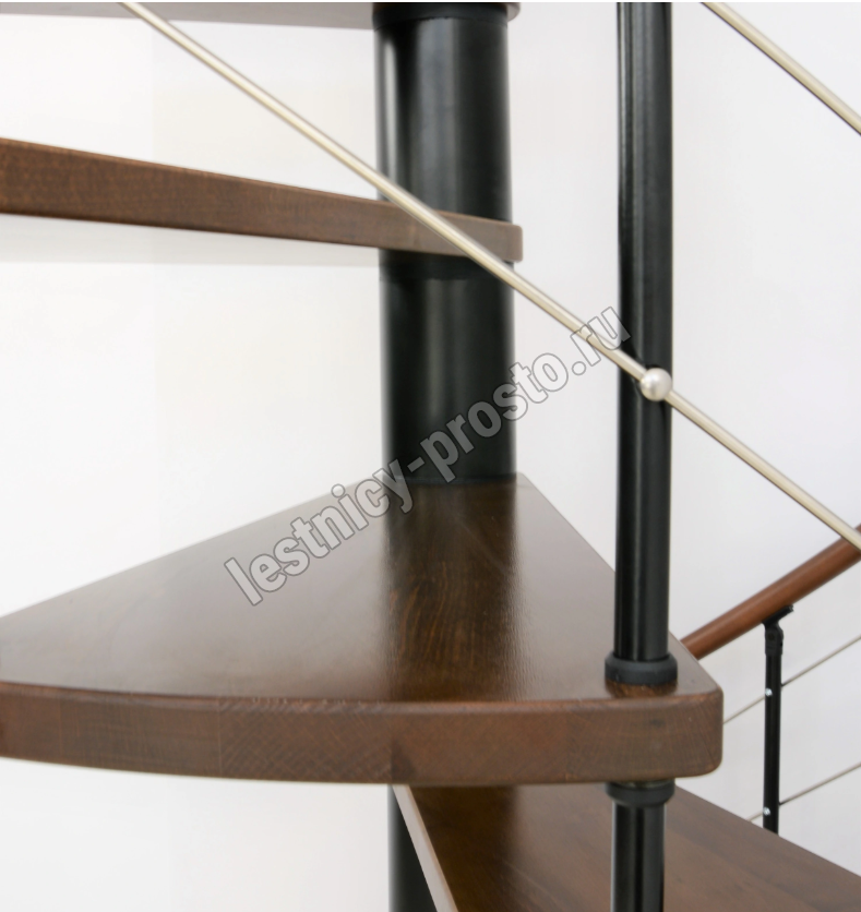 Деревянные ступени и поручни  изготовлены из массива дерева и покрыты специальным лаком от компании Минка, который предотвращает царапины, сколы или стирание поверхности при интенсивном использовании лестницы.