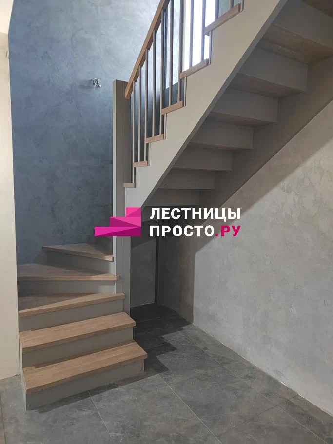 П-образная лестница из березы и ясеня по индивидуальному проекту