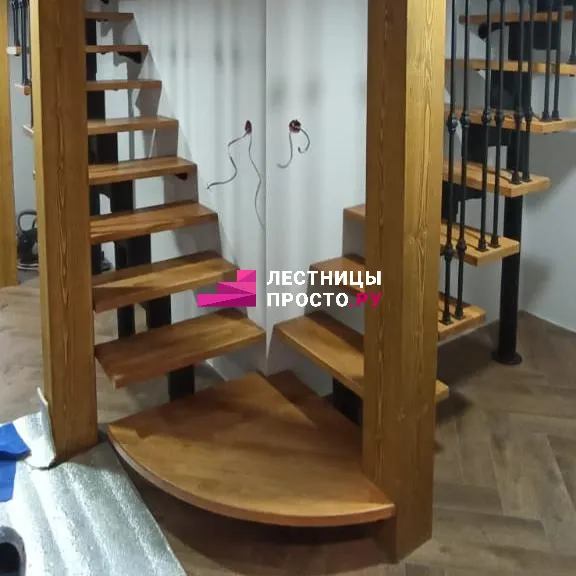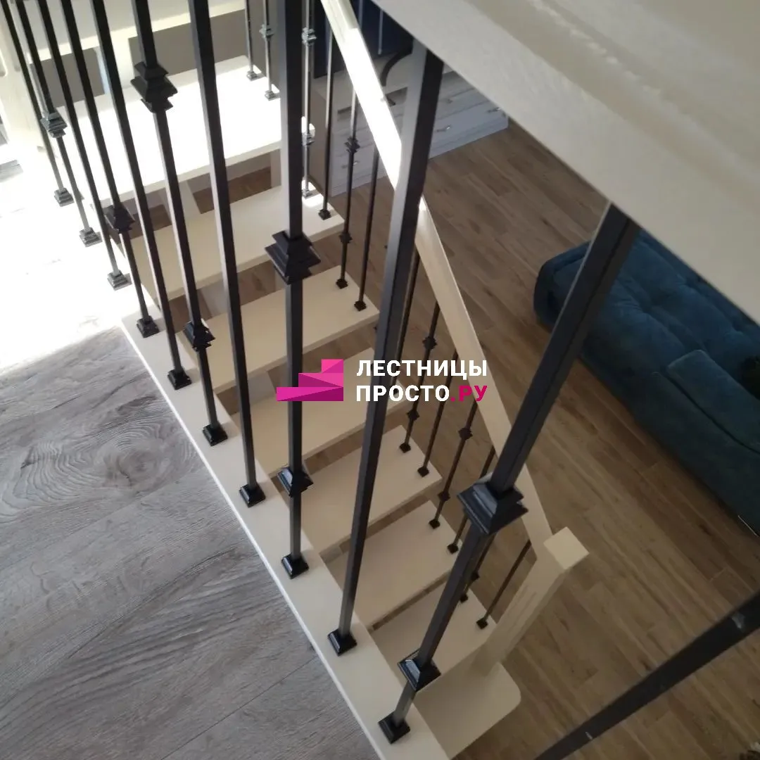 Лестница на центральном каркасе с коваными балясинами ЛП 703