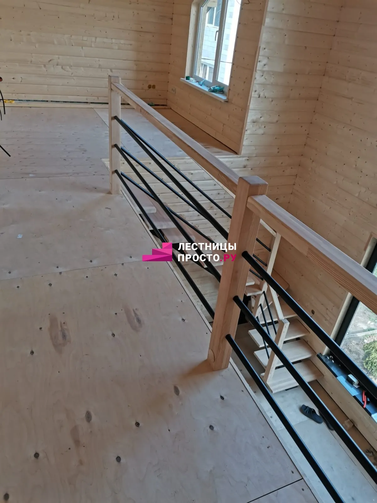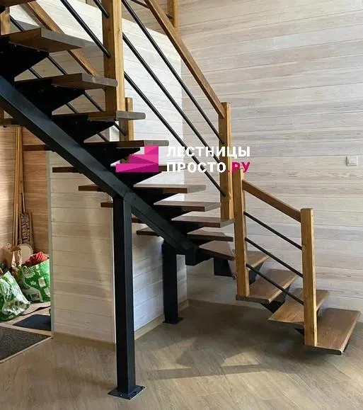 Металлическая лестница с дубовыми ступенями и ограждением LP-1-20