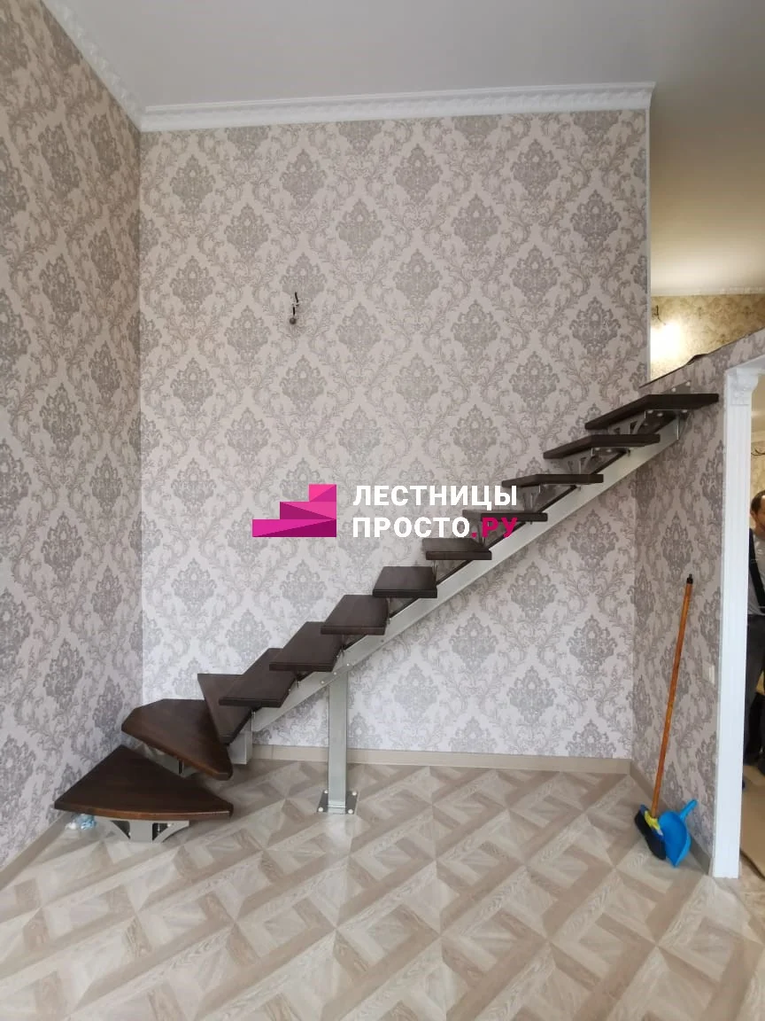 Лестница на центральном каркасе г-обр. металлик, ступени лиственница, LP-151021