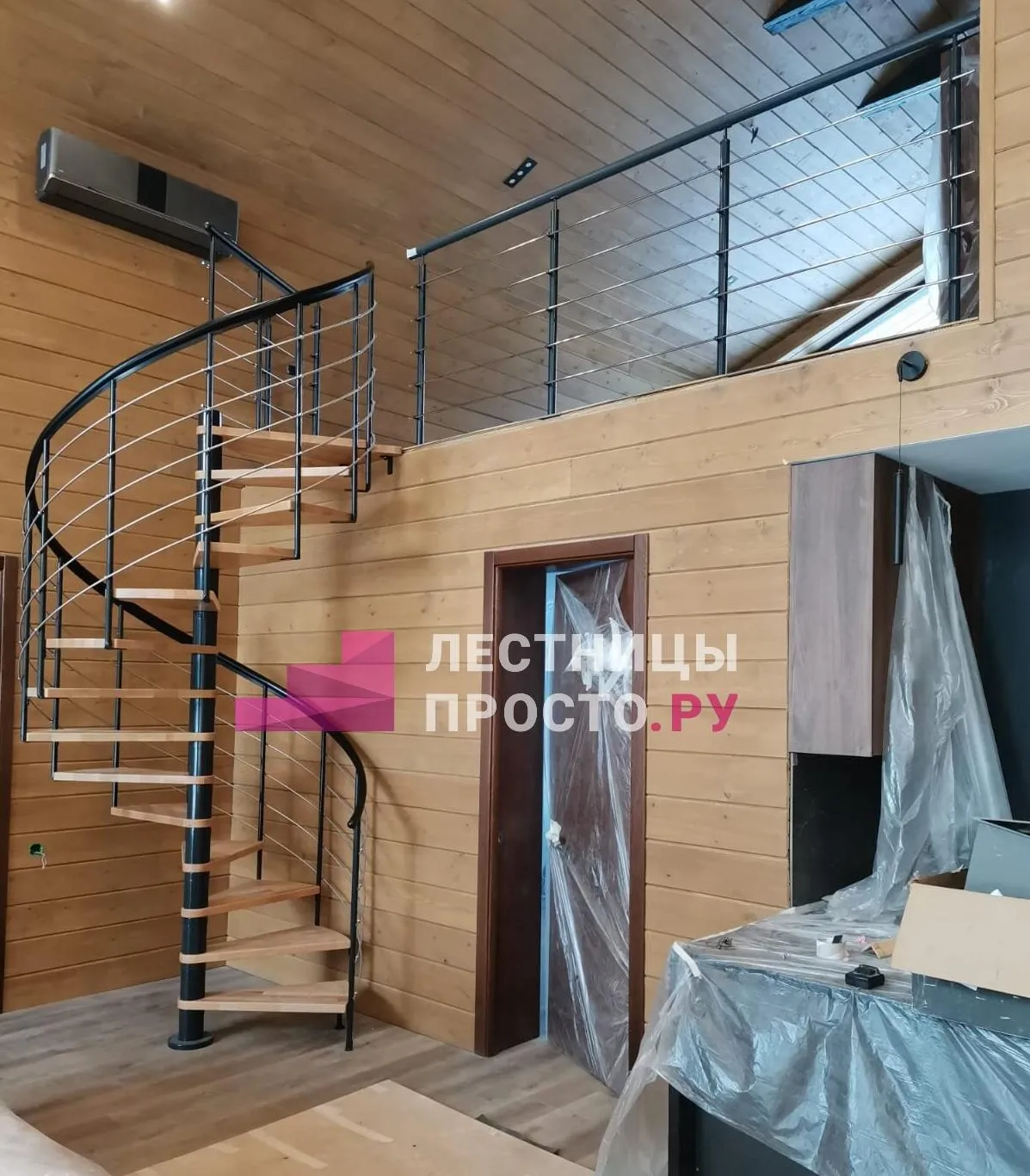Современная винтовая лестница на мансардный этаж в деревянном доме LP-3066